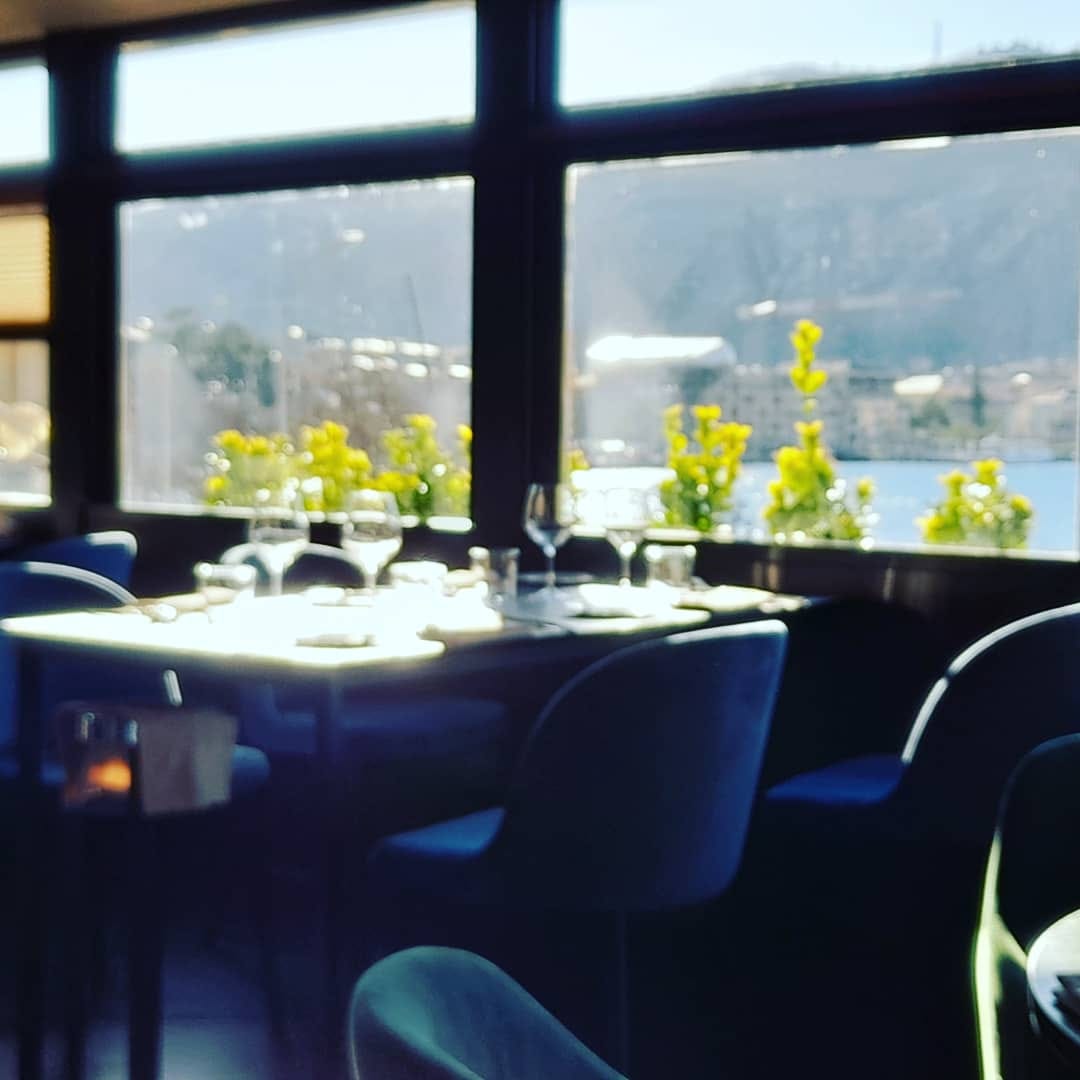 The sun's rays came through the large windows overlooking the lake and warmed the first row of tables. I chose the shade, in the third row. Since there were only a few of us, and I didn't have anyone between me and the openings, my gaze could equally embrace the entire panorama: on one side the city by the lake and the port; in the middle the breakwater, The Life Electric and the Tempio Voltiano; on the other side the widening of the first basin of the lake and Villa Olmo in the background.